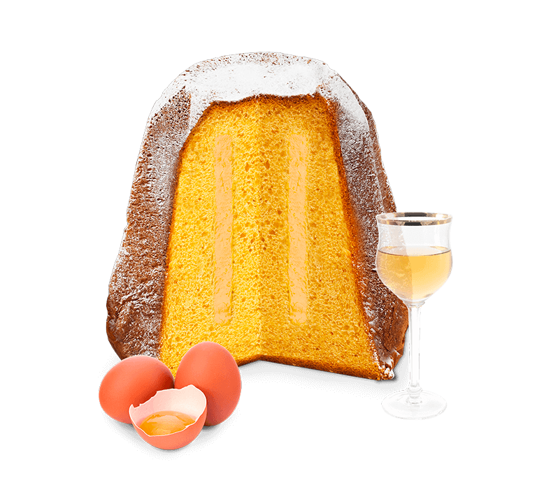 V našem Pandoro Zabajon se skriva izdatna količina nadeva iz penaste kreme, pripravljene z rumenjaki po torinskem receptu, ki vsebuje tudi sladko likersko vino.