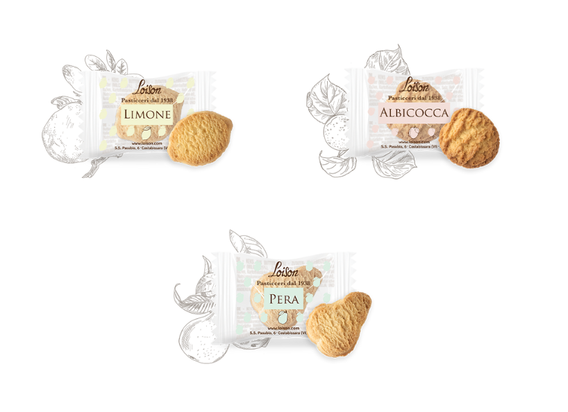 Piškoti z okusi limona, marelica in hruška v papirnati torbici so majhne in enkratne poslastice, pripravljene iz edinstvenih sestavin, kot so sveže maslo, sicilijanske limone, marelice, hruške viljamovke in naravna vanilija Mananara z Madagaskarja.